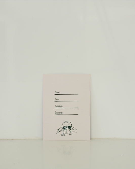 Maak je wijnproeverij extra bijzonder met onze stijlvolle uitnodigingen! De uitnodigingen zijn al inbegrepen bij het complete pakket, los bestellen is alleen nodig als je extra exemplaren wilt of een ander ontwerp zoekt.